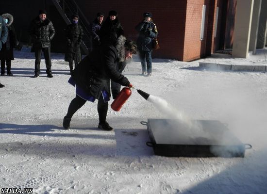 и пожарные показали, как правильно использовать углекислотный огнетушитель