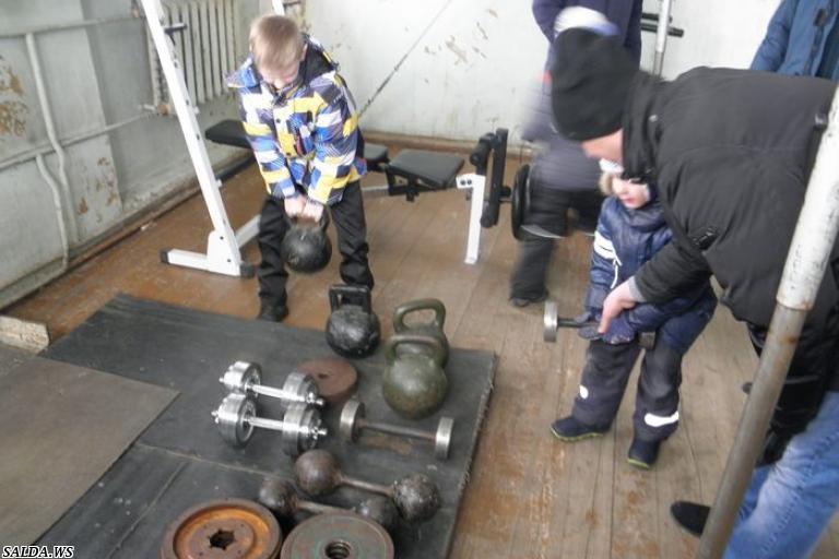 попробовали потягать гири и походили на беговой дорожке.