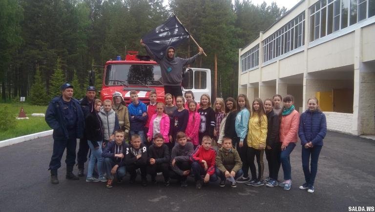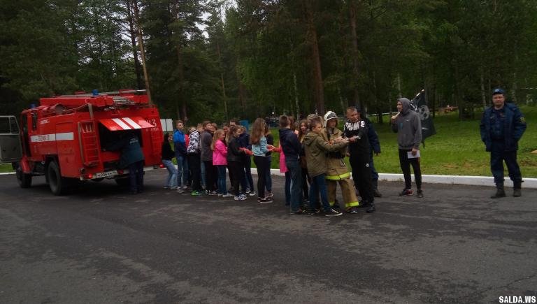 отряды, в которых каждый ребенок помогал держать пожарный рукав.