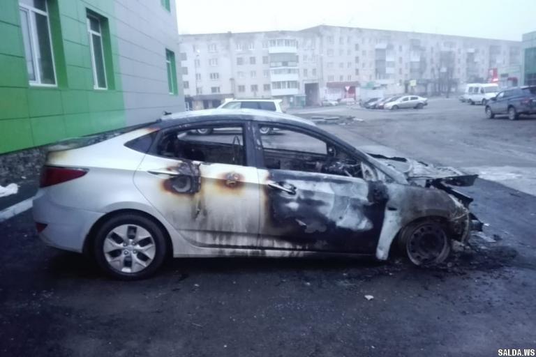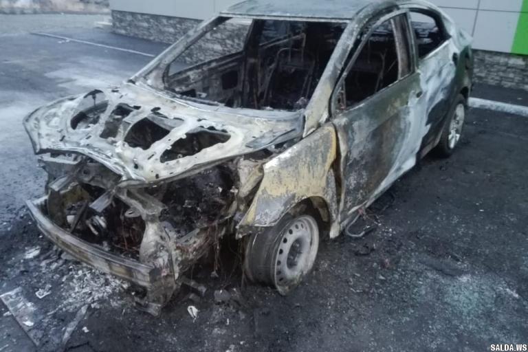 Солярис. По прибытию пожарных подразделений машина полностью была объята огнем.