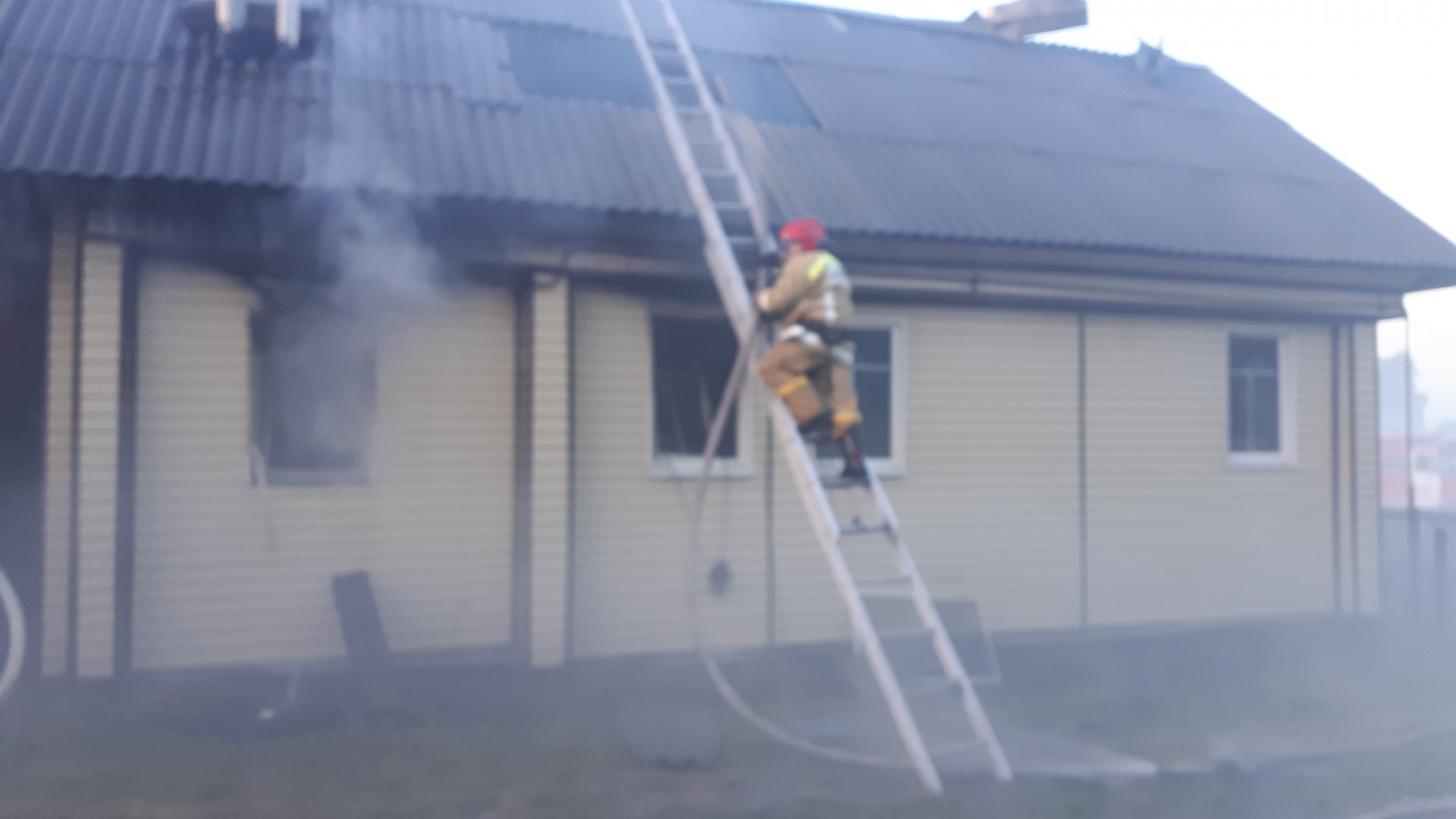 пожар в окно, уже вызвали пожарных и приступили к тушению подручными