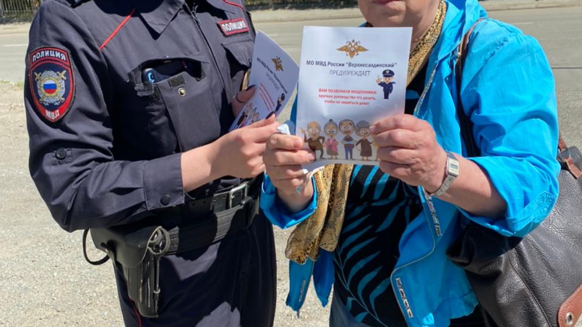 Ни минуты без дела. Салдинские полицейские раздают памятки по профилактике мошенничеств даже во время патрулирования улиц и охраны общественного порядка